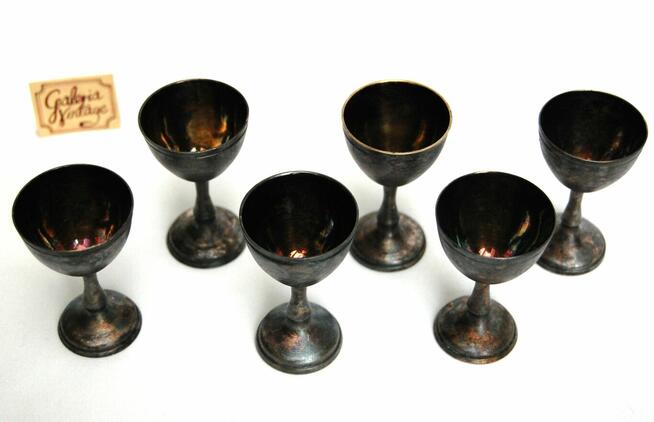 Stare kieliszki do likieru, nalewek z lat 70 lub 80 XX w. Sześć sztuk. Kieliszki są platerowane srebrem. Wnętrze czaszy ...